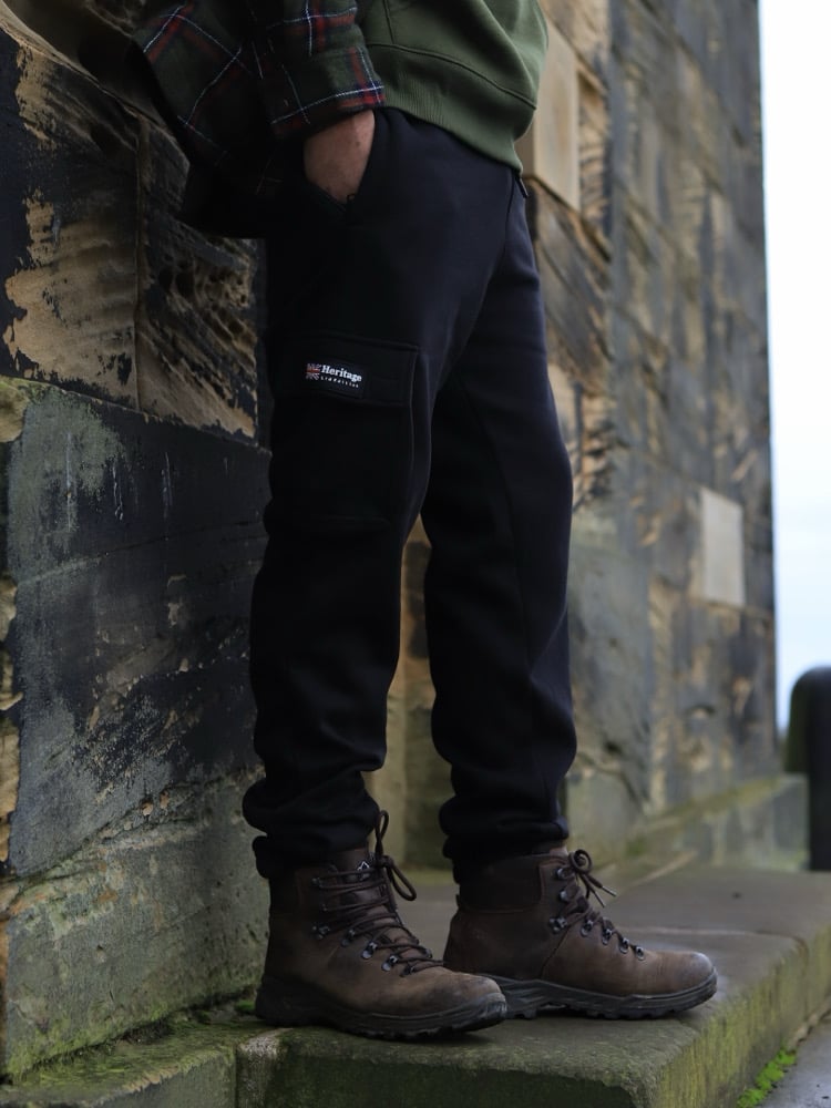 Featuring side pockets on each leg plus an elasticated waistband with drawstring.